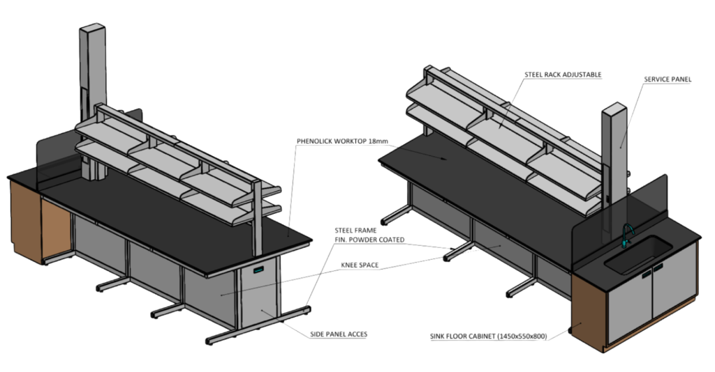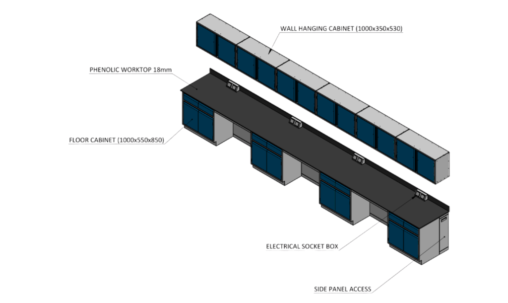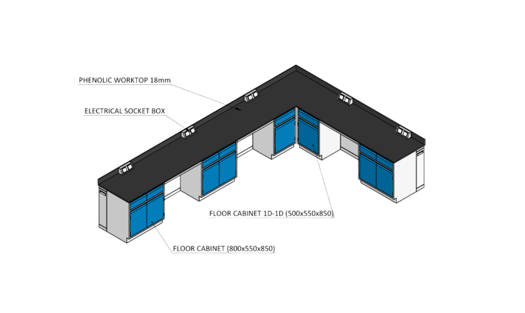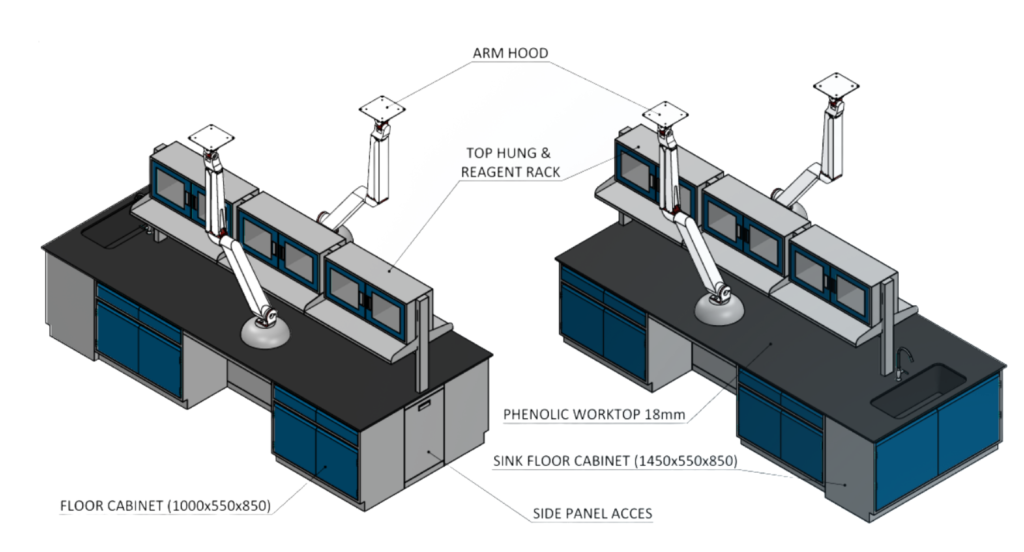 Slide ONE STOP SOLUTION FOR ALL YOUR LABORATORY NEEDS ISLAND BENCH Island Bench with Reagant Rack ISLAND BENCH Island Bench with Top Hung and Armhood WALL BENCH Wall Bench with Utility Gas WALL BENCH Wall Bench Sink WALL BENCH Wall Bench with Wall Hanging Cabinet WALL BENCH L – Bench WALL BENCH W – Bench WALL BENCH U – Bench STORAGE CABINET Acid Cabinet STORAGE CABINET Flammable Cabinet STORAGE CABINET LOCKER SIT OVER BENCH FUME HOOD BALANCE TABLE PASS BOX